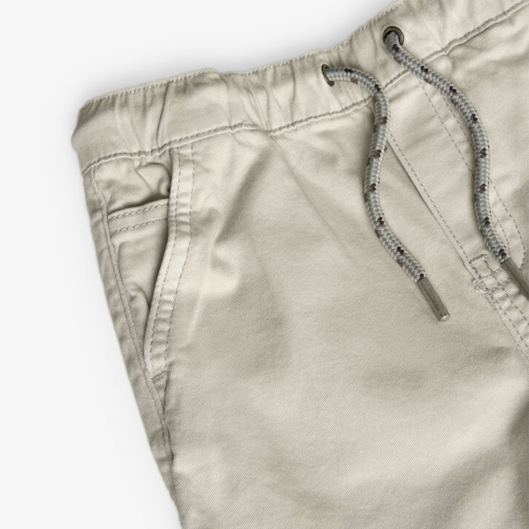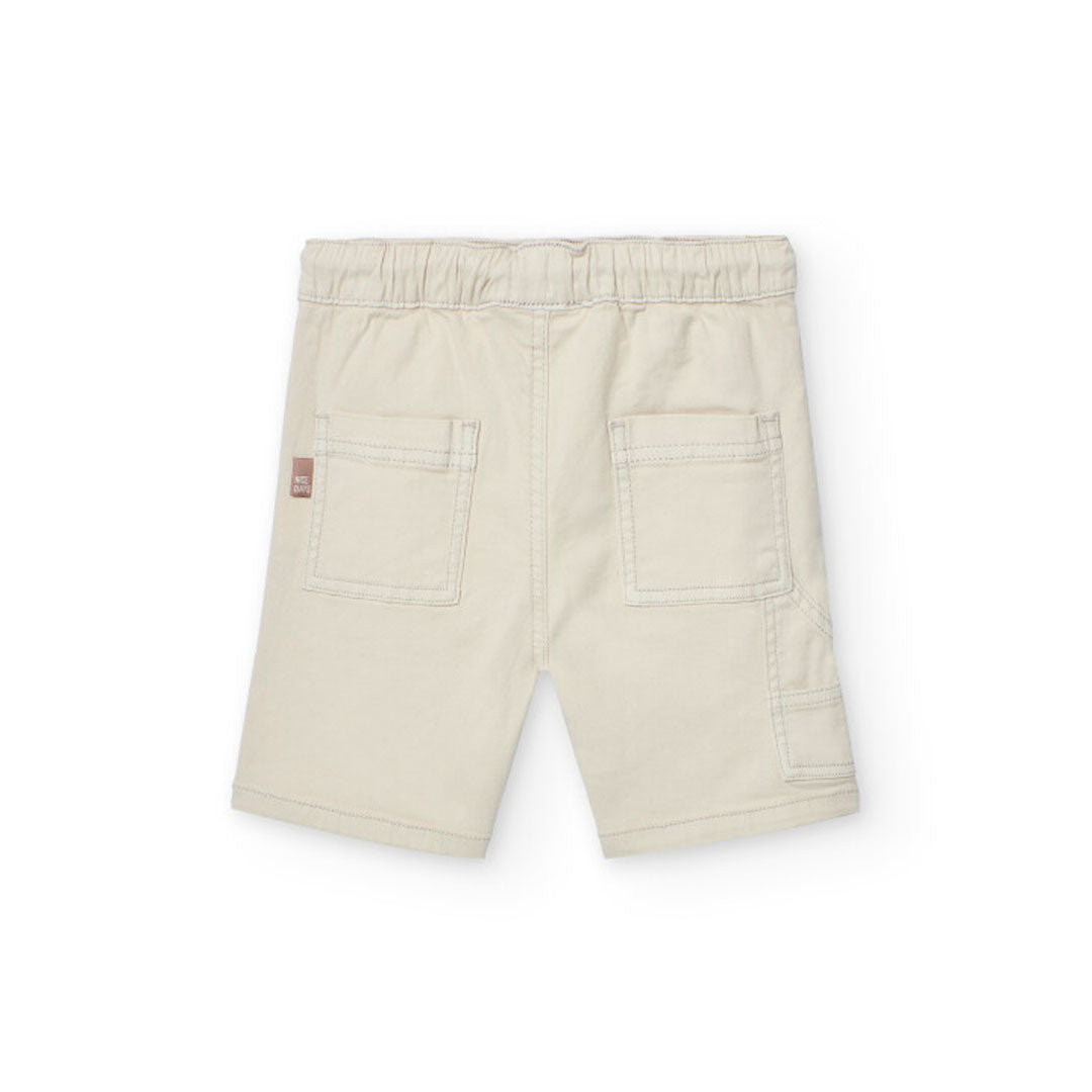 Estas son unas bermudas de sarga elástica para niño en color beige, ideales para los días calurosos....