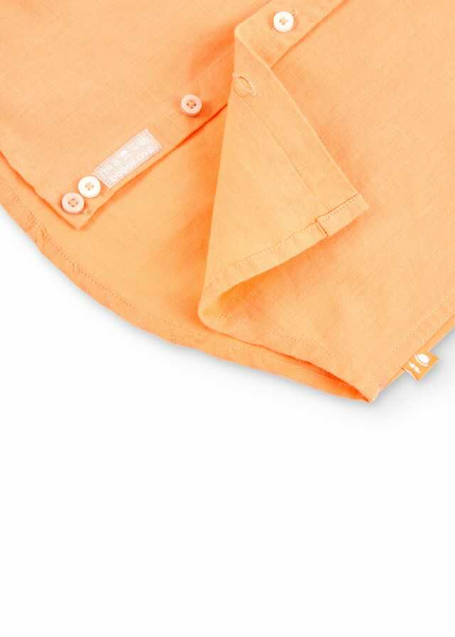 Camisa manga larga de niño en lino , en color lemon . Se cierra con botones ....