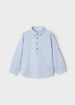 Camisa de manga larga para niño con trabilla y botón en el lateral para poder recogerla y...