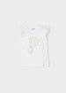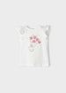 Camiseta de manga corta para niña con detalles de volantes. Cuello redondo. Elementos de adorno: apliques florales,...