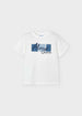 Camiseta de manga corta para niño. Tejido 100% algodón. Elementos de adorno: aplique decorativo, bordados.
