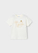 Camiseta de manga corta para niño. Cuello redondo. Elementos de adorno: bordado, serigrafía (print).