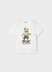 Camiseta de manga corta para niño. Elementos de adorno: dibujo en la parte delantera.