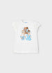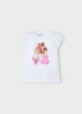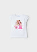 Camiseta de manga corta para niña. Cuello redondo. Suave tejido de algodón elástico. Modelo con rizo. Elementos...