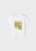 Prenda ECOFRIENDS 100% algodón sostenible. Camiseta de manga corta para niño. Cuello redondo. Motivo PLAY WITH interactivo...