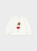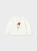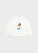Camiseta de manga larga para bebé con volante en la bocamanga. Cuello redondo con volante. Cierre con...