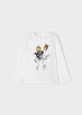 Camiseta de manga larga para niña. Cuello redondo con volante. Pequeña abertura en la espalda con cierre...