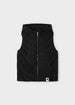 Chaleco sin mangas para niña. Cuello con capucha. Exterior textil con efecto acolchado. Bolsillo funcional en la...