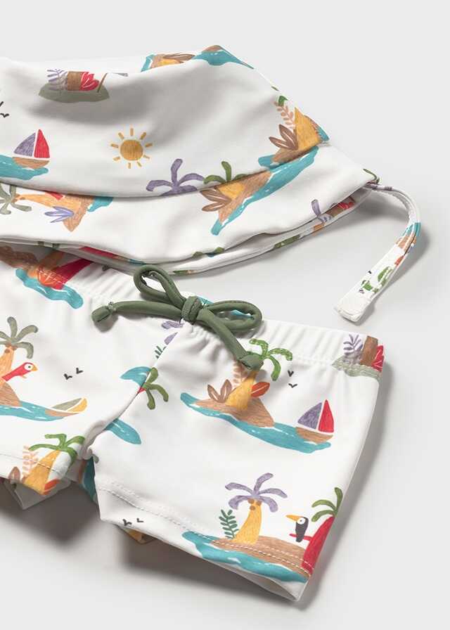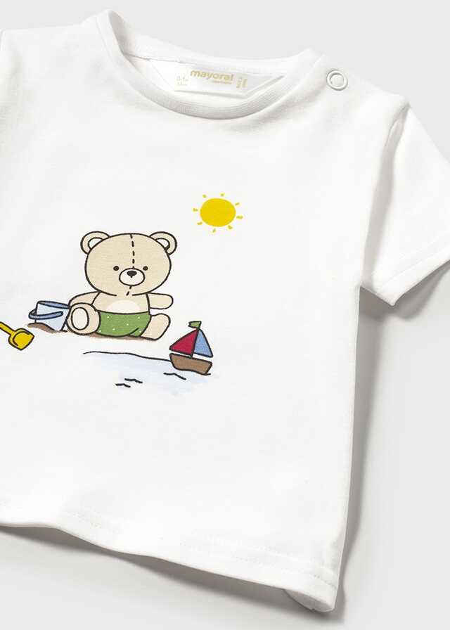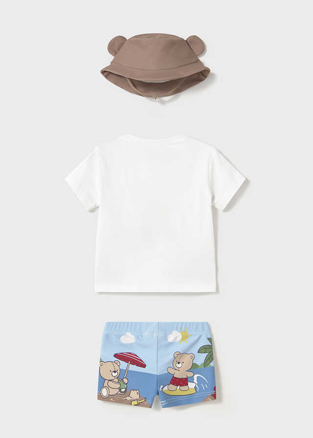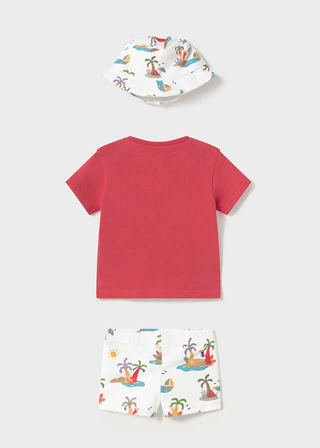 Original conjunto de tres piezas para recién nacido.Camiseta de manga corta para recién nacido. Cuello redondo. Botón...