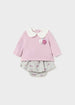 Original set de dos piezas para recién nacido.Camiseta de manga larga para recién nacido. Cuello bebé. Cierre...