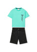 Conj. Camiseta Punto Tintada Y Bermudas Denim Punto