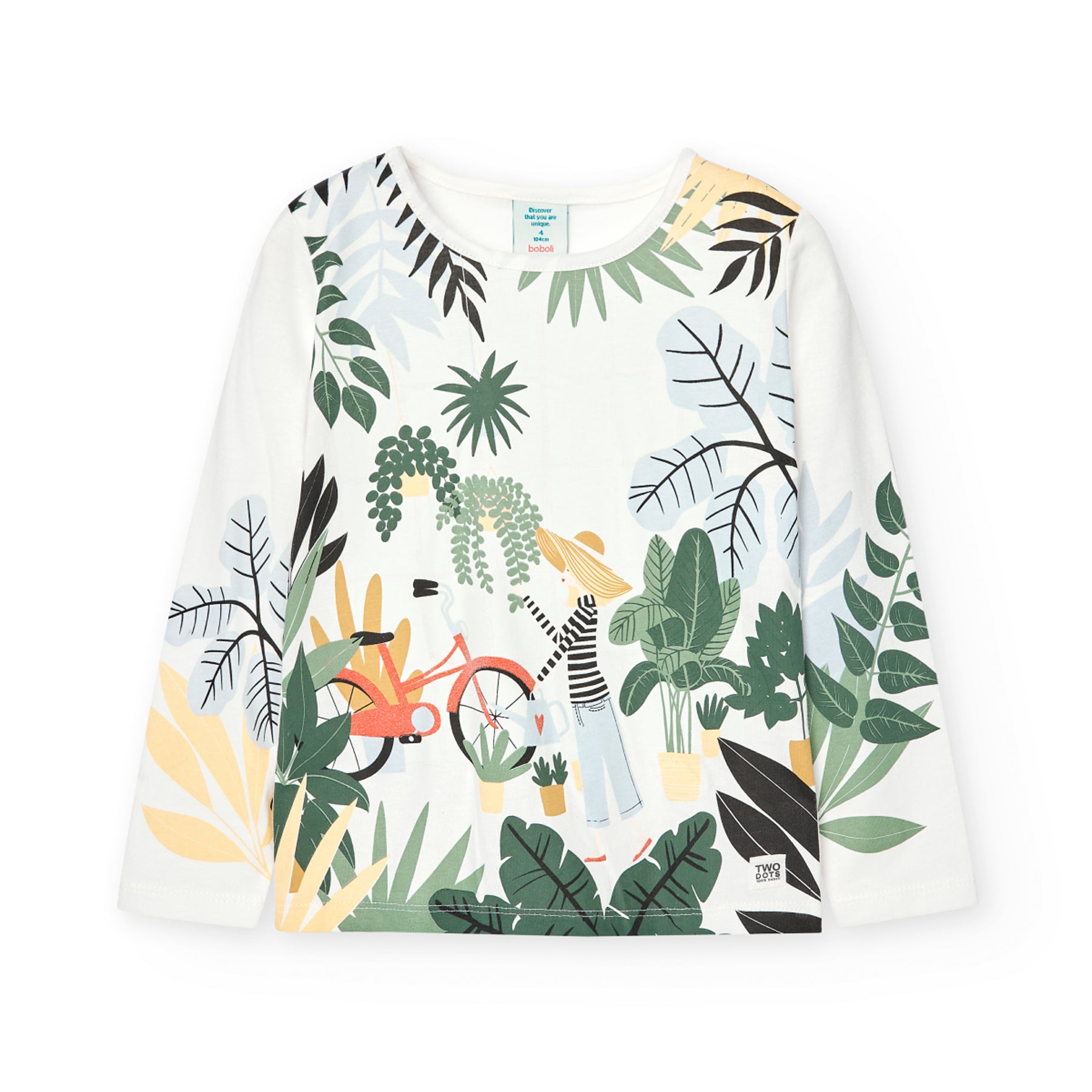 Camiseta de manga larga de punto liso en color blanco químico para niña. La camiseta tiene un...