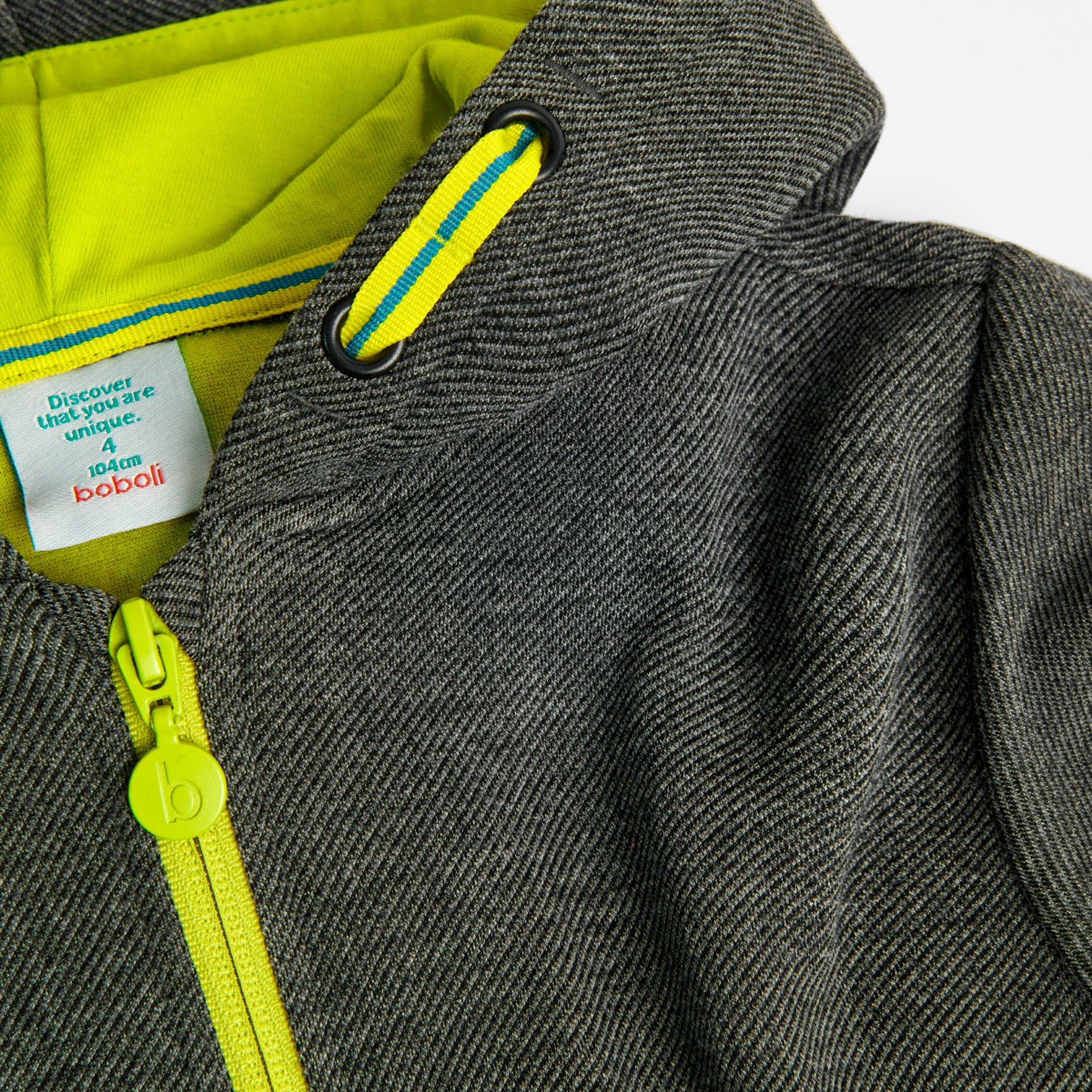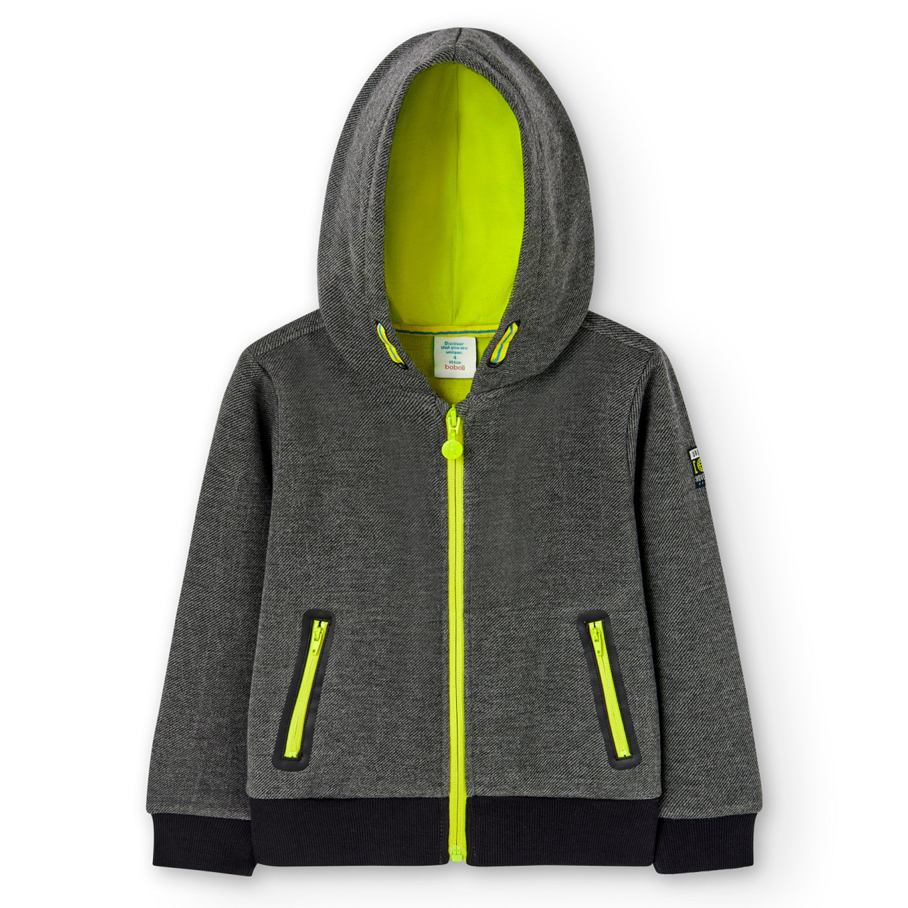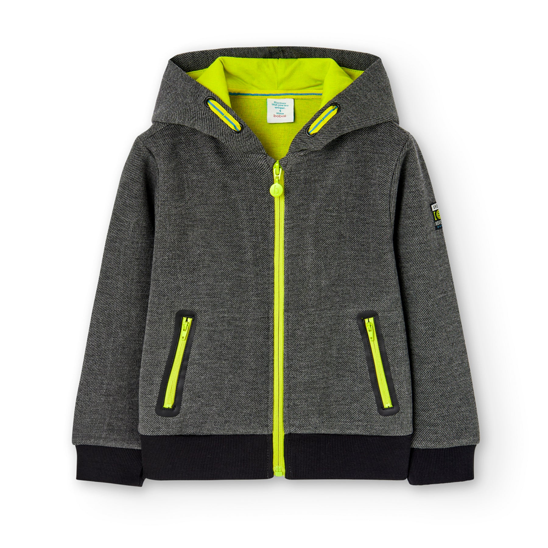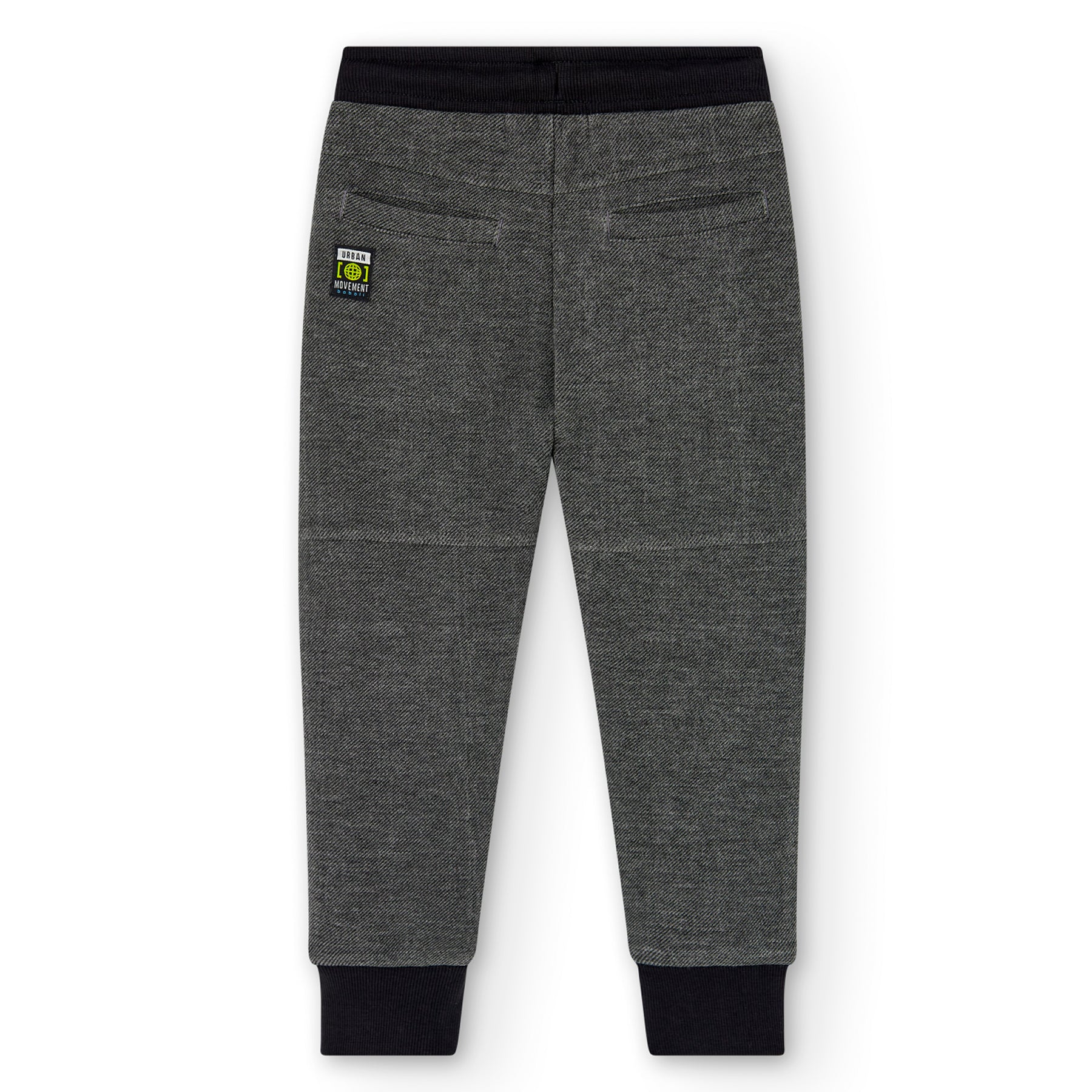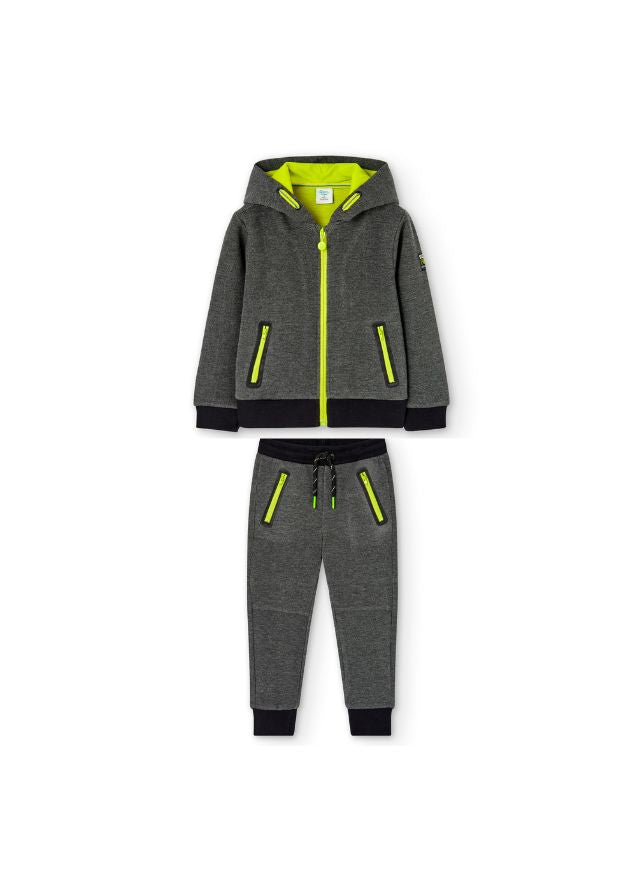 Pantalón felpa fantasía doble cara de niño en color gris vigoré. Bolsillos delanteros con cremallera a contraste...