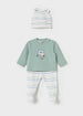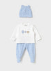 Original conjunto de tres piezas para recién nacido.Sudadera de manga larga para recién nacido. Cuello redondo. Botones...
