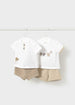 Set de cuatro piezas para recién nacido formado por dos conjuntos de camiseta de manga corta y...