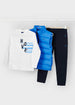 Chaleco para niño. Cierre central delantero con cremallera.Camiseta de manga larga para niño. Diseño estampado.Pantalón largo deportivo...