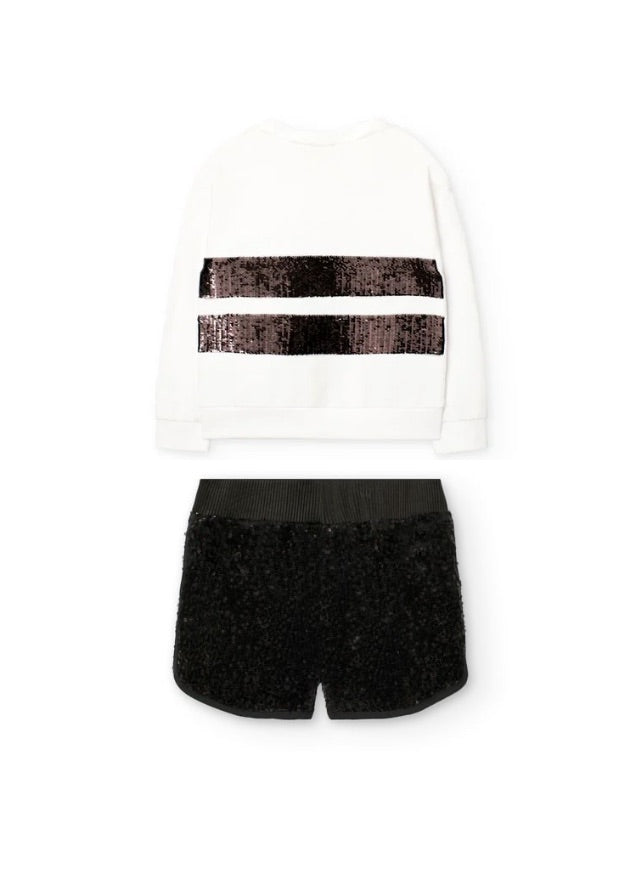Conj. Sudadera Felpa Elástica Y Short Con Lentejuelas