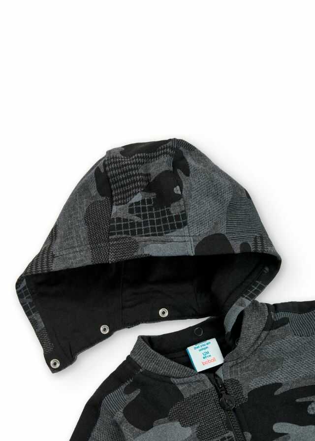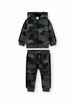 Pantalón de niño de felpa con estampado camuflaje en colores negros y grises. Se ajusta a la...
