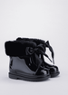 Botas de agua con cuello de pelo y detalle de lazo de raso. Acabado brillo, plantilla confort...