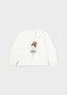 Camiseta de manga larga para bebé con volante en la bocamanga. Cuello redondo con volante. Cierre con...