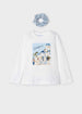 Camiseta de manga larga para niña. Cuello redondo. Tejido 100% algodón. Elementos de adorno: lentejuelas. Diseño estampado. Por...