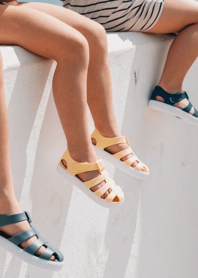 Cangrejera en acabado mate de estilo sport, con cierre adherente y plantilla confort extraíble.