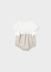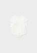 Pelele de manga corta para recién nacido. Cuello redondo con volante. Botones a presión en la entrepierna...