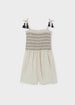 Mono de tirantes para chica. Tejido de aspecto fresco y actual con lino. Este modelo lleva detalles...