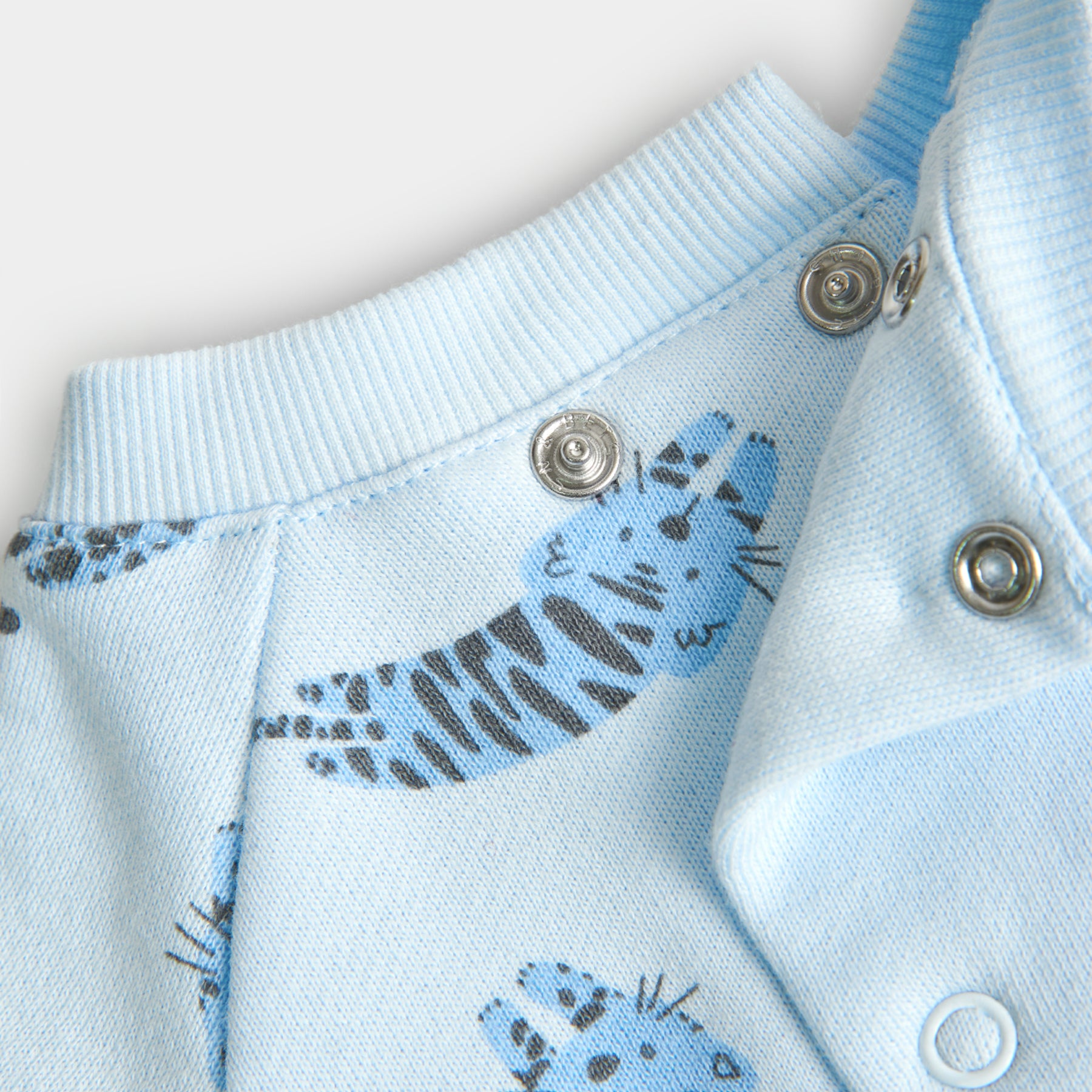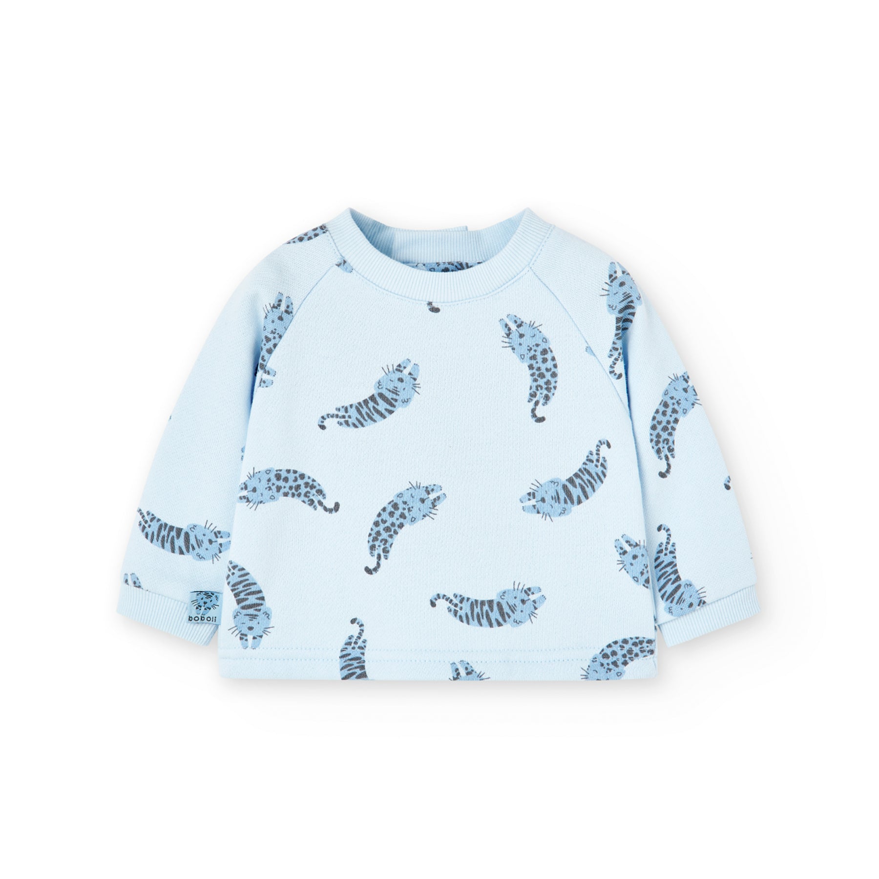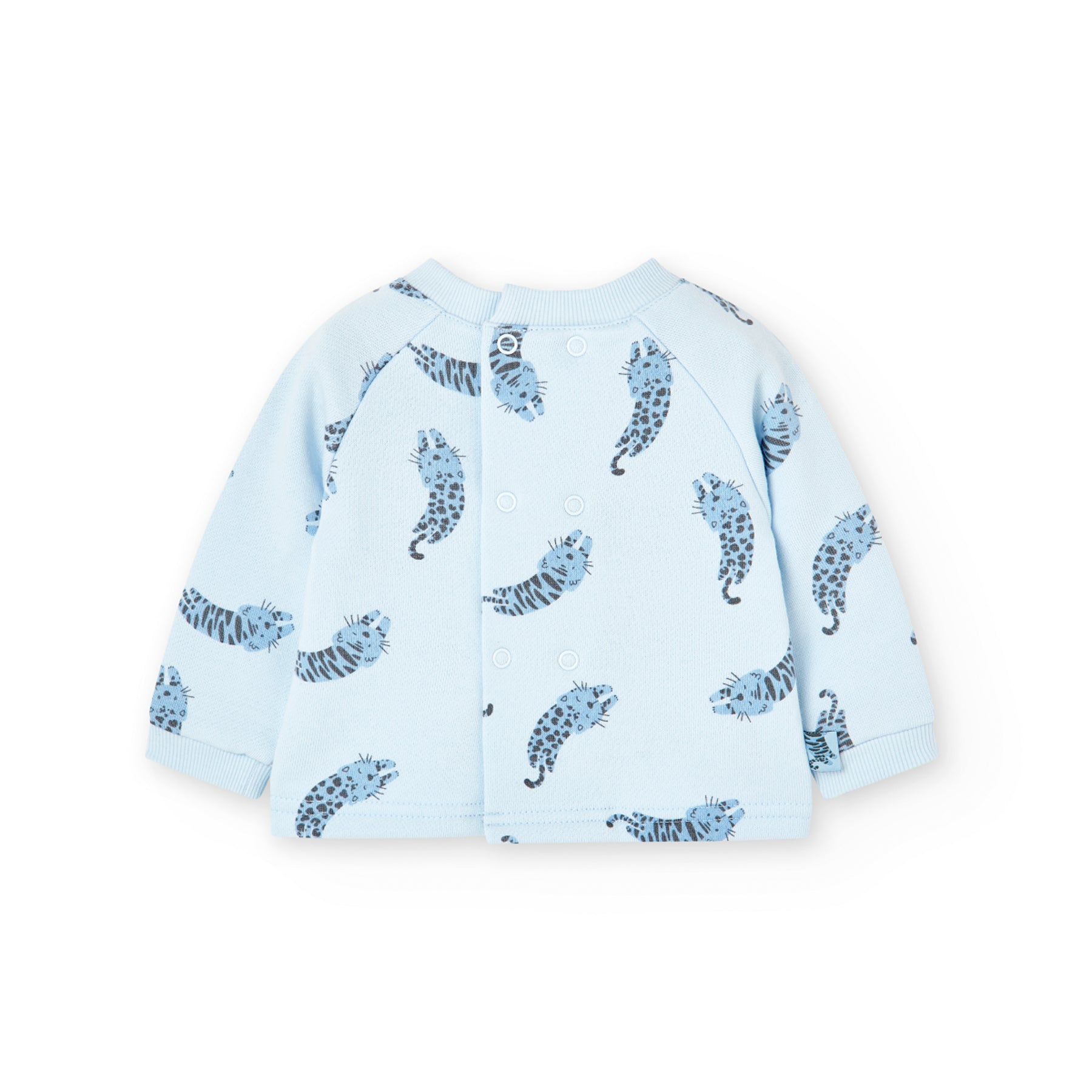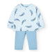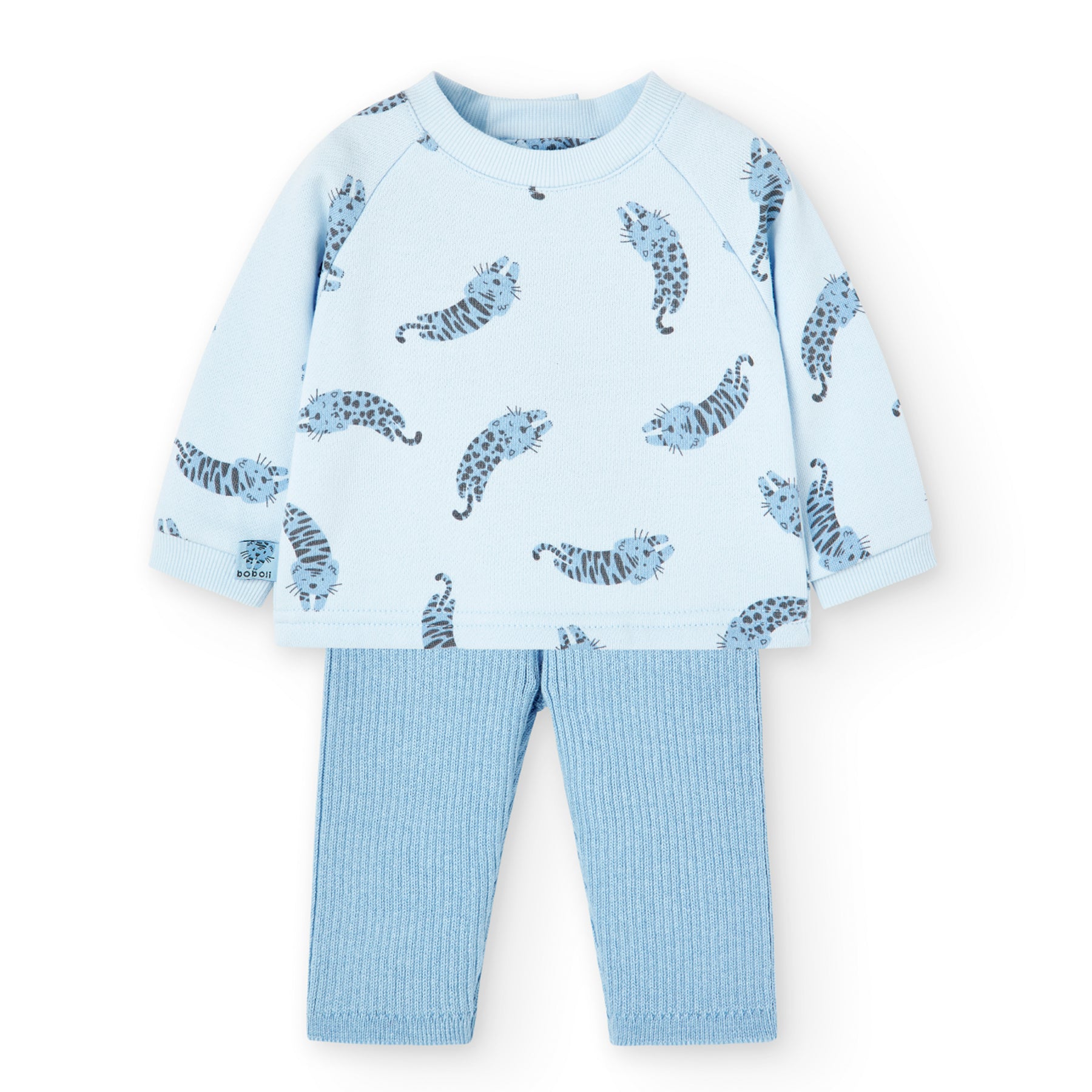 Conjunto de sudadera y leggingns de bebé. Sudadera de felpa celeste con estampado leopardos en tonos celestes...