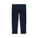 Pantalón de niño de satén elástico en color marino. La bragueta se abrocha con botón y cremallera....