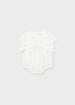 Pelele de manga corta para recién nacido. Cuello redondo con volante. Botones a presión en la entrepierna...