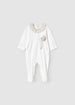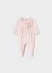 Pijama de manga larga para recién nacido. Diseño con pies. Cuello redondo con volante. Cierre con botones...