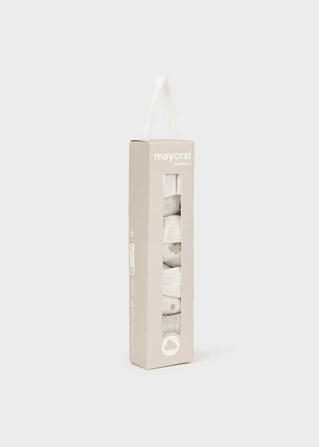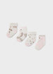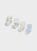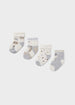 Set de cuatro pares de calcetines para recién nacido. Diseño estampado.