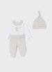 Prenda ECOFRIENDS, contiene algodón sostenible. Original conjunto de tres piezas para bebé.Body de manga larga para bebé....