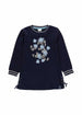 Vestido de manga larga de interlock de algodón en color marino para niña. Tiene canalé en puños...